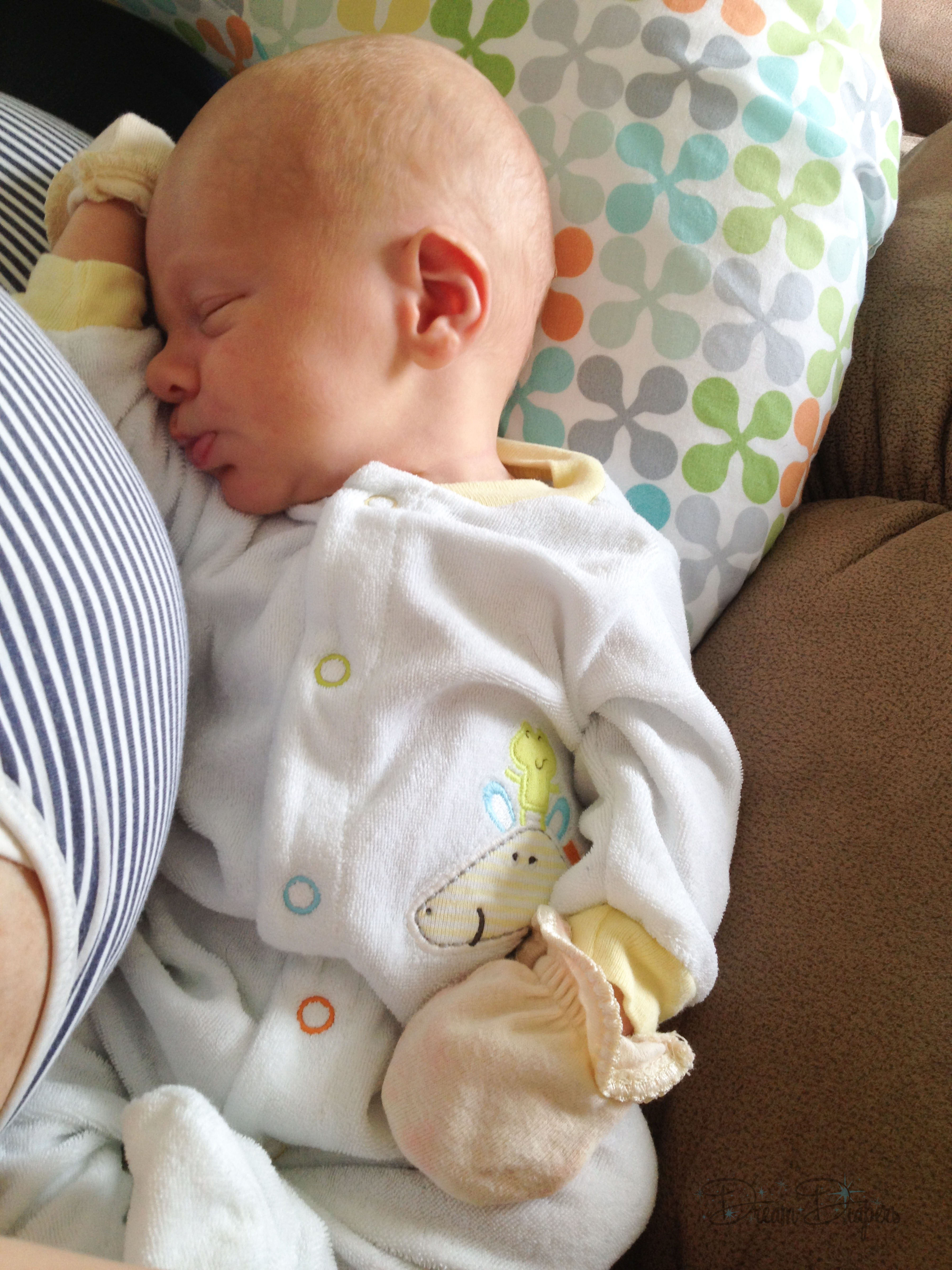 He couldn’t latch because I did have defective breasts; I had flat nipples. He had nothing to latch onto! I had fantastic and very available lactation consultants who taught me how to use a nipple shield, how to pump, how to spoon feed my tiny 6 lb 2 oz squishy newborn my gorgeously gold colostrum from a spoon, making him look like a crusty, sugary mess (almost as if he’d been indulging in my grandpa’s maple syrup).