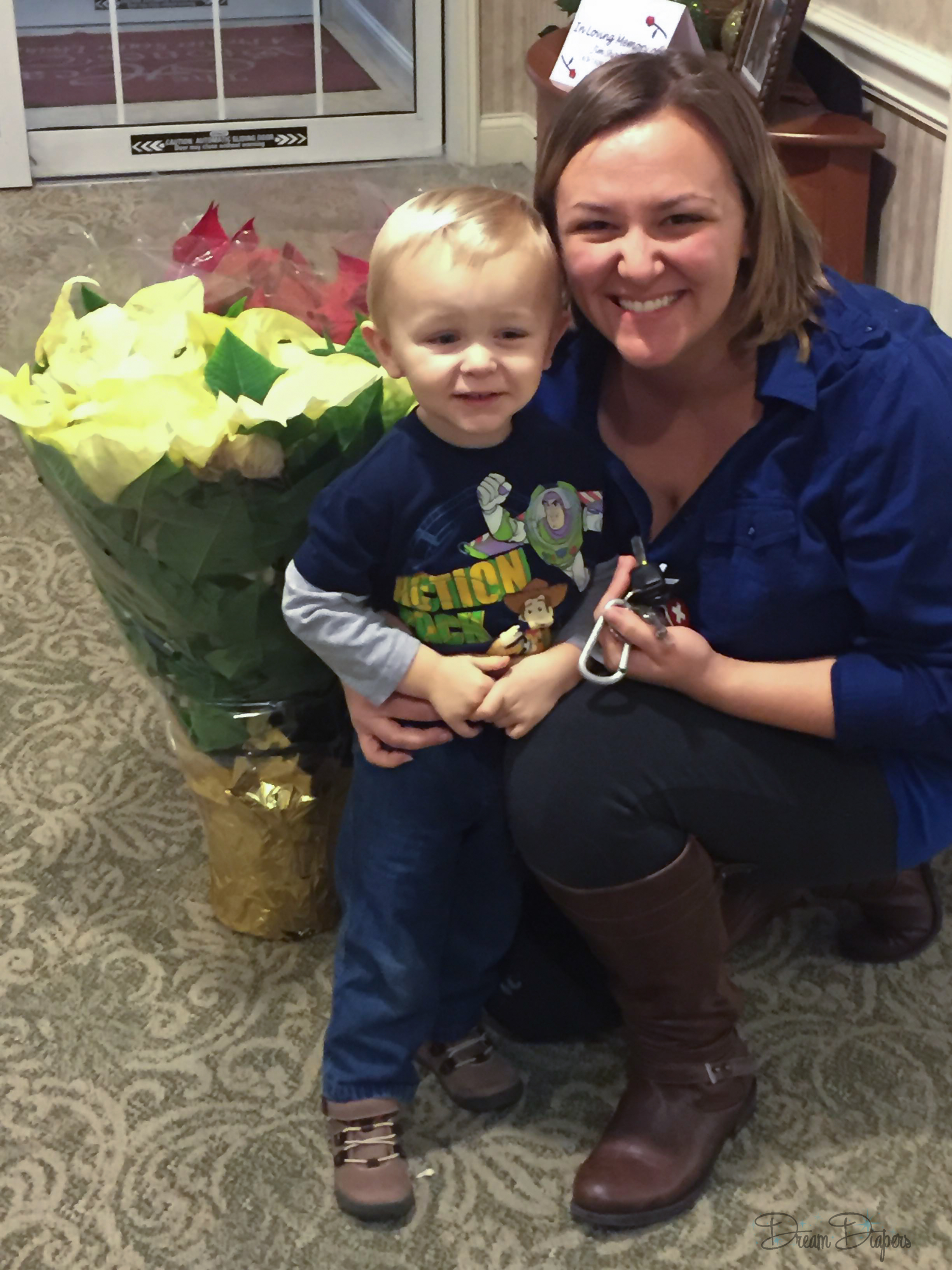 The past few years have brought a lot of loss in our families. When I was pregnant with Lucas, my husband lost three of his four grandparents. After this fall, we are now both left with only one grandfather each to cherish. We are lucky that both of our surviving grandparents are strong and healthy enough to continue to live at home and take care of themselves, but we know that isn’t the case for a lot of seniors who don’t have family to help them. For many reasons, a lot of seniors end up living in retirement communities or nursing homes. Funds to decorate and keep places like these cheery aren’t always readily available, so when my parents both said to find a home for the poinsettias they’d ordered from Lucas’ school fundraiser, I knew exactly where we would take them.
